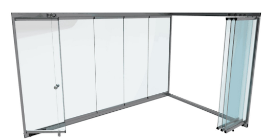 La pliere, toate panourile se strâng într-o zonă restrânsă, eliberând spațiu și oferind o deschidere amplă. Astfel, balconul rămâne aerisit, luminos și fără a fi aglomerat, permitându-ți să te bucuri de lumina naturală pe tot parcursul zilei.