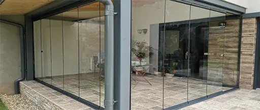 ICS-T este special conceput pentru închiderea teraselor la nivelul parterului, având un sistem glisant și pliabil cu panouri de sticlă termoizolantă, asigurând confort termic și estetic.